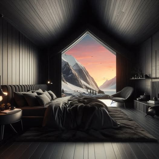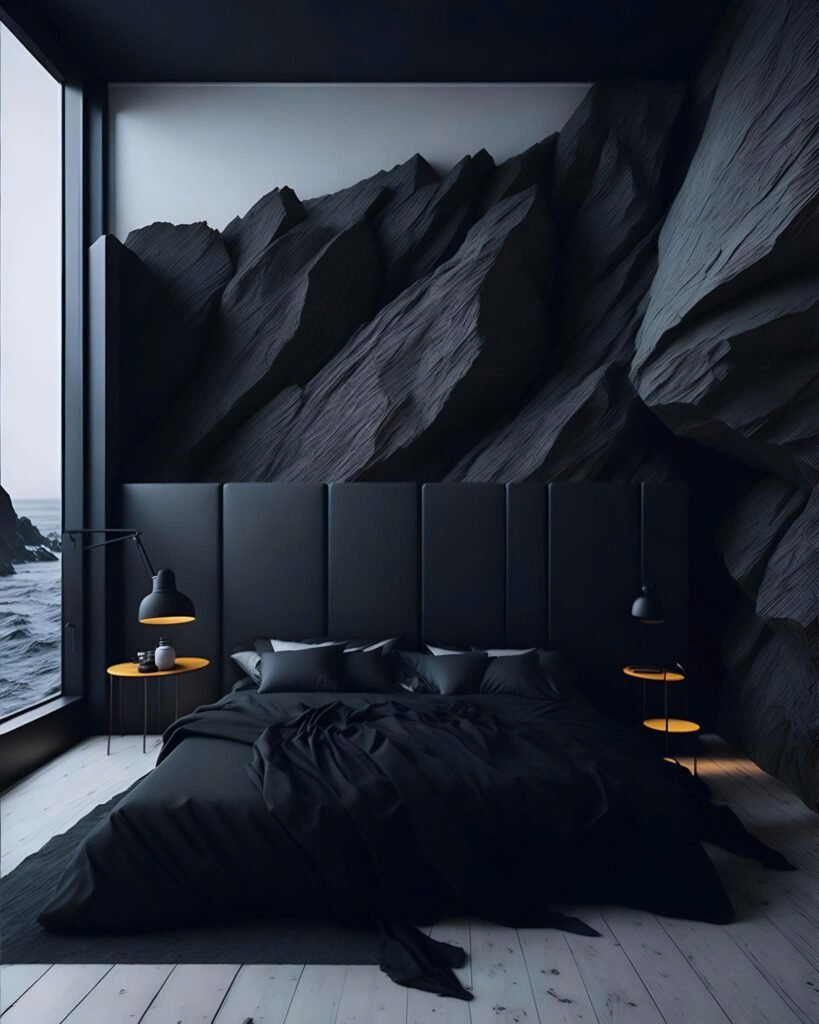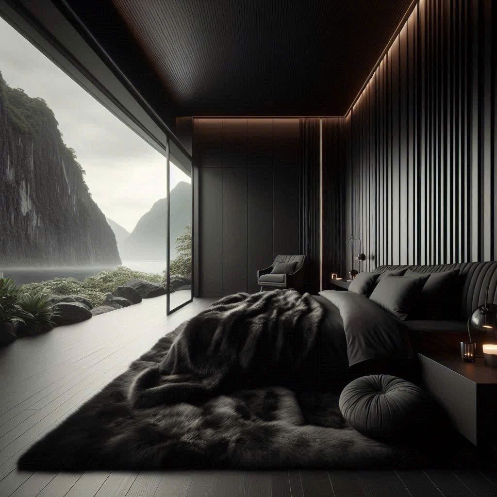 Bedroom black idea so cool Bedroom black for everyone option A Bedroom with colored lights and sunset by the cliff option B Plan B with black color and rounded circle Creative Living
